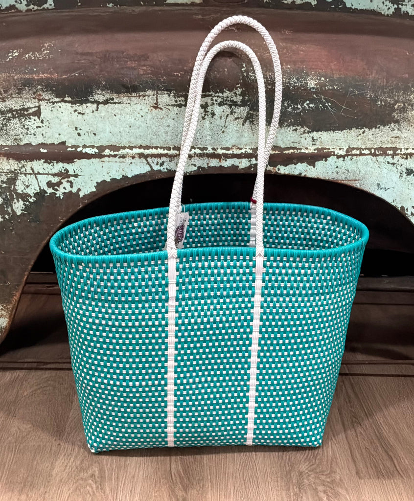 Marco Turquoise and White Handwoven Tote